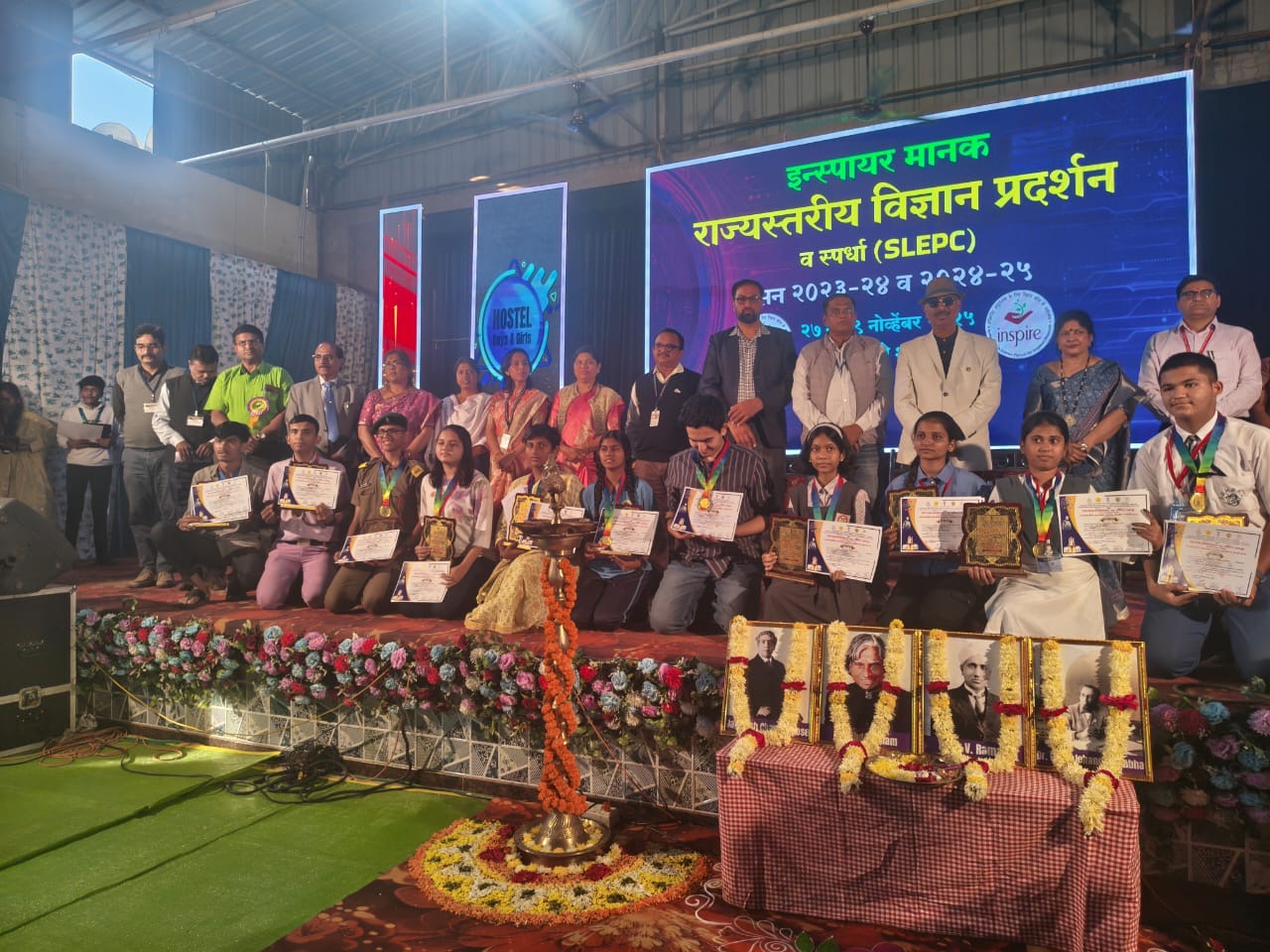 राज्य विज्ञान संस्था, नागपूर. अंतर्गत राज्यस्तरीय Inspire Award 2023-24 व 2024-25 साठी विज्ञान प्रदर्शनामध्ये शारदा जुनिअर कॉलेजचा विद्यार्थी आकाश रावसाहेब बोठे या विद्यार्थ्याने महाराष्ट्रात प्रथम क्रमांक पटकावून *राष्ट्रीय स्तरीय* विज्ञान प्रदर्शन स्पर्धेसाठी निवड झाली आहे. हे निश्चितच शारदा शैक्षणिक संकुलासाठी अभिमानाची बाब आहे. *आकाश बोठे* याला संकुलाचे प्राचार्य श्री. अनिल बनसोडे सर विज्ञान शिक्षिका सौ. साबळे के.डी. मॅडम, श्रीम. लकारे मॅडम, वर्गशिक्षक डॉ. पठाण ए .ए .सर व सर्व शिक्षकांचे अनमोल असे मार्गदर्शन लाभले.