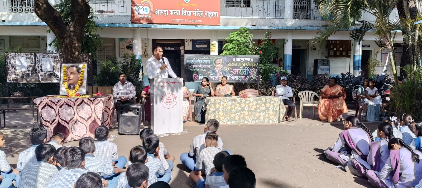 ( राहाता) रयत शिक्षण संस्थेच्या शारदा शैक्षणिक संकुलात भारतरत्न, युगपुरुष, डॉ. बाबासाहेब आंबेडकर यांना 135 व्या जयंतीनिमित्त कार्यक्रम आयोजित करण्यात आला होता . याप्रसंगी पर्यवेक्षिका सौ कमल साबळे यांनी प्रास्ताविक केले शारदा शैक्षणिक संकुलाचे मार्गदर्शक रमेश भाऊ शिंदे तसेच विद्यालयाचे प्राचार्या शिला संसारे , मुख्याध्यापक राजकुमार साळवे इंग्लिश मीडियमच्या प्रिन्सिपल निशा चेंगोट, प्रा.शरद गमे प्रा बाळासाहेब दिघे, पंकज दिघे शारदा विद्या मंदिर चे शिक्षक वृंद, शारदा कन्या विद्या मंदिर सर्व शिक्षक वर्ग यांच्या हस्ते डॉ. बाबासाहेब आंबेडकर यांच्या प्रतिमेचे पूजन करण्यात आले. त्यानंतर स्नेहल बिडवे ,श्रेया बिडवे,यांनी मनोगते व्यक्त केली त्यातून बाबासाहेबांच्या जीवनपट विद्यार्थ्यांनी आपल्या भाषणातून मांडला तसेच विद्यालयातील शिक्षिका सौ सोनाली थोरात यांनी बाबासाहेबांचे सामाजिक शैक्षणिक कार्य व शिक्षणाबद्दल महत्व सांगितले तसेच बाबासाहेब आंबेडकर हा एक विचार आहे आणि चंद्र ,सूर्य ,तारे असेपर्यंत बाबासाहेबांचे विचार समाजाला प्रेरणा देण्याचं काम करत राहील असे मत मांडले. त्यानंतर अध्यक्षीय भाषणात रमेश शिंदे यांनी बाबासाहेब आंबेडकरांनी प्रतिकूल परिस्थितीत शिक्षण घेऊन सर्व समाजाला पुढे नेण्यासाठी महत्त्वाचे कार्य केले, त्याचबरोबर स्त्रियांना शिक्षणाचा अधिकार दिला कामगार वर्ग शेतकरी वर्ग या सर्व घटकांना एकत्रित करण्याचं काम, व व दिशा देण्याची महत्त्वाचे काम बाबासाहेबांनी केलं अशा या महामानवास विनम्र अभिवादन केले.सूत्रसचलन सौ बेबी कारभारी केले.यानंतर निलोफर पठाण यांनी सर्वांचे आभार मानले .