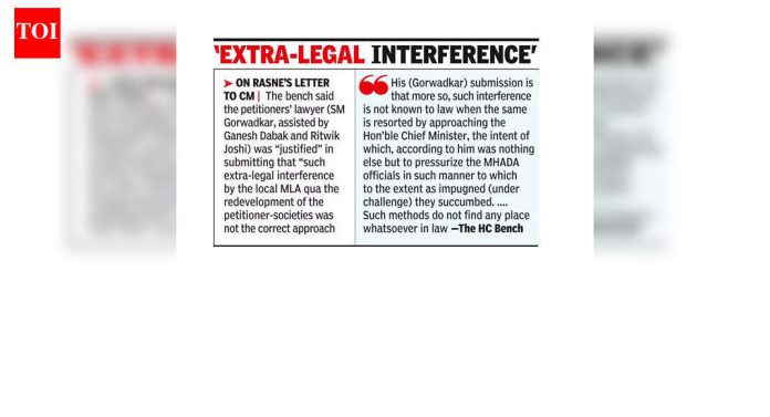 पुणे : भाजपचे कसबा पेठचे आमदार हेमंत रासने यांच्या सुंगलोरी गृहनिर्माण सहकारी संस्थांच्या पुनर्विकासाला स्थगिती देण्याच्या पत्रावरील मुख्यमंत्र्यांच्या (मुख्यमंत्री) टिप्पणीचा चुकीचा अर्थ काढणाऱ्या म्हाडाच्या अधिकाऱ्यांना मुंबई उच्च न्यायालयाने ‘आपले अधिकार आणि कार्यक्षेत्र ओलांडून’ आणि नुसते सहकारी प्रकल्पाच्या पुनर्विकासाला स्थगिती दिली आहे. सदाशिव पेठ.23 डिसेंबर रोजी न्यायमूर्ती गिरीश कुलकर्णी आणि न्यायमूर्ती आरती साठे यांच्या खंडपीठाने या प्रकरणात “म्हाडा अधिकाऱ्यांवर दबाव टाकण्याच्या” हेतूने “स्थानिक आमदार (रासने) यांनी केलेल्या अतिरिक्त-कायदेशीर हस्तक्षेपाचा” अपवाद घेतला.सध्याची पंक्ती निर्माण होण्यापूर्वी 9 एप्रिल रोजी म्हाडाचे ना-हरकत प्रमाणपत्र (एनओसी) सुंगलोरी गृहनिर्माण सहकारी संस्थेला दिलेले आहे, हे वैध आणि कायदेशीर आहे आणि ते पुनर्विकास योजनेसह पुढे जाऊ शकते, असे हायकोर्टाने घोषित केले. खंडपीठाने म्हाडाला 15 जानेवारी 2026 रोजी किंवा त्यापूर्वी नूतन गृहनिर्माण सहकारी संस्थेच्या प्रलंबित प्रस्तावावर निर्णय घेण्याचे निर्देश दिले. म्हाडाच्या अधिकाऱ्यांनी यापूर्वी सुंगलोरी गृहनिर्माण सहकारी संस्थेला एनओसी मंजूर करूनही आणि नूतन गृहनिर्माण सहकारी संस्थेचा प्रस्ताव प्रलंबित असतानाही “स्टे” च्या प्रभावासाठी संप्रेषण जारी केले होते. 14 मे रोजी, रासने यांनी मुख्यमंत्र्यांना पत्र लिहून लोकमान्यनगरमधील सर्व जुन्या आणि मोडकळीस आलेल्या म्हाडाच्या इमारतींचा समावेश असलेल्या क्लस्टर डेव्हलपमेंट प्रकल्पासाठी आणि सुंगलोरी आणि नूतन गृहनिर्माण सहकारी संस्थांच्या येऊ घातलेल्या पुनर्विकासाला त्यात अडथळा म्हणून ओळखले. मुख्यमंत्र्यांनी “पुढील आदेश होईपर्यंत स्थगिती द्या” अशी टिप्पणी केली आणि ती म्हाडाच्या उपाध्यक्षांकडे पाठवली, ज्यांनी त्यावर कोणतीही विशिष्ट सूचना नोंदवली नाही. मात्र, म्हाडाचे कार्यकारी वास्तुविशारद आणि नियोजक यांनी 24 जून रोजी मुख्याधिकाऱ्यांना पत्र लिहून स्थगितीचा आदेश दिला होता. मुख्याधिकाऱ्यांनी नंतर पीएमसीला पत्र लिहून सुंगलोरीला एनओसीवर “स्टे” दिले आणि नूतन गृहनिर्माण सहकारी संस्थेला पत्र देखील जारी केले. या आरोपित (चॅलेंज अंतर्गत) पत्रांविरोधात दोन्ही संस्थांनी उच्च न्यायालयात धाव घेतली.खंडपीठाने नमूद केले की, “आम्ही म्हाडाच्या अधिका-यांना आणि विशेषत: मुख्य अधिकाऱ्यांनी पीएमसी (सुप्रा) यांना संबोधित करणाऱ्या पत्राचा तसेच पुणे गृहनिर्माण आणि क्षेत्र विकास मंडळाचे प्रभारी वास्तुविशारद आणि नियोजक श्री महेशकुमार बनकर यांनी 02O5 वरून 07O5 वरच्या अधिकाऱ्यांना कायदेशीररित्या योग्य न 
