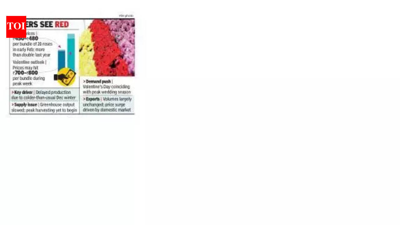पुणे: व्हॅलेंटाईन डेच्या अगोदर घाऊक आणि किरकोळ बाजारात गुलाबाच्या किमतीत झपाट्याने वाढ झाली आहे, डिसेंबरमध्ये विलक्षण थंड हिवाळ्याच्या परिस्थितीमुळे उत्पादनास उशीर झाला आहे आणि विवाहसोहळा आणि व्हॅलेंटाईन भेटवस्तूंकडून जोरदार हंगामी मागणी आहे.फेब्रुवारीच्या सुरुवातीस, पुण्यातील किरकोळ दर आधीच 20 गुलाबांच्या प्रति बंडल रु.450-Rs480 पर्यंत पोहोचले आहेत – गेल्या वर्षीच्या याच कालावधीतील पातळी जवळपास दुप्पट आहेत.निर्यातदार आणि उद्योग प्रतिनिधींनी सांगितले की परदेशातील मागणी गेल्या वर्षीच्या तुलनेत किरकोळ प्रमाणात स्थिर राहिली आहे, परंतु सध्याच्या किमतीतील वाढ मुख्यत्वे कडक देशांतर्गत पुरवठ्याचा परिणाम आहे.उत्पादकांनी सांगितले की 2024 पेक्षा 2025 मध्ये हिवाळा जास्त थंड होता, ज्यामुळे वनस्पतींची वाढ कमी झाली आणि पीक कापणी चक्रात विलंब झाला, विशेषतः ग्रीनहाऊसमध्ये. परिणामी, पूर्ण-प्रमाणात उत्पादन अद्याप सुरू झालेले नाही, जेव्हा मागणी पारंपारिकपणे जास्त असते अशा वेळी बाजारपेठेतील उपलब्धता मर्यादित करते.“या वर्षी थंडीमुळे उत्पादनाला विलंब झाला. फुले अजूनही ग्रीनहाऊसमध्ये उभी आहेत आणि तयार नाहीत. यामुळे उपलब्धता कमी झाली आहे,” असे सोएक्स फ्लोरा येथील व्यवसाय विकास प्रमुख डॉली महावर यांनी सांगितले. मागणी-पुरवठ्यातील तफावतमुळे किंमती वाढल्या आहेत. गेल्या वर्षीच्या तुलनेत निर्यातीचे प्रमाण जवळपास सारखेच आहे, असेही त्या म्हणाल्या.2024 मध्ये, हिवाळ्यातील उष्णतेमुळे लवकर उत्पादन सुरू झाले, फेब्रुवारीच्या पहिल्या सहामाहीत उपलब्धता कमी झाली. यावर्षी, उत्पादकांनी जास्त पुरवठा टाळण्यासाठी स्तब्ध उत्पादनाचे नियोजन केले, परंतु डिसेंबरमधील तीव्र थंडीमुळे उत्पादन कमी झाले, असे व्यापाऱ्यांनी सांगितले.दरम्यान, निर्यातदारांनी सांगितले की, स्पर्धात्मक किंमती आणि सुधारित गुणवत्तेद्वारे समर्थित भारतीय गुलाब स्थिर परदेशी व्याज आकर्षित करत आहेत. इंडियन सोसायटी ऑफ फ्लोरिकल्चर प्रोफेशनल्सचे सदस्य आणि पवना संस्कृती फार्मर प्रोड्युसर कंपनीचे संचालक जयसिंग हुलावळे म्हणाले की गुणवत्ता हा एक महत्त्वाचा घटक आहे. “भारतीय फुलांना चांगली मागणी आहे, हिवाळ्याच्या अनुकूल परिस्थितीमुळे सुधारित गुणवत्तेमुळे समर्थित आहे. या कालावधीत स्वच्छ हवामानामुळे उत्पादकांना चांगली देठाची लांबी आणि चांगला रंग प्राप्त करण्यास मदत झाली, जे देशांतर्गत आणि निर्यात बाजारासाठी महत्त्वाचे आहे,” ते म्हणाले.ते पुढे म्हणाले की, लाल गुलाब आणि रंगीत वाणांना मागणी मजबूत आहे, निर्यातदार वर्षभर मोठ्या ऑर्डर हाताळतात. तथापि, देशांतर्गत किमती सध्या निर्यातीपेक्षा जास्त कामगिरी कर