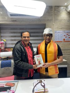 राहाता येथील डॉ. मैड मल्टीस्पेशालिटी हॉस्पिटल येथे 2000 मोतीबिंदू शस्त्रक्रिया यशस्वीरित्या पूर्ण करण्यात आल्याबद्दल डॉ. संतोष मैड यांचा साहित्यप्रेमी मंडळ सोमेश्वरनगर ता- बारामती या साहित्य संस्थेचे संस्थापक अध्यक्ष- प्रा. हनुमंत माने यांच्या वतीने विशेष सन्मान करण्यात आला.